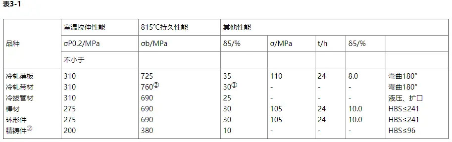 三、Hastelloy X(N06002)力學(xué)性能:HastelloyX技術(shù)標(biāo)準(zhǔn)規(guī)定的不同品種的力學(xué)性能見(jiàn)表3-1