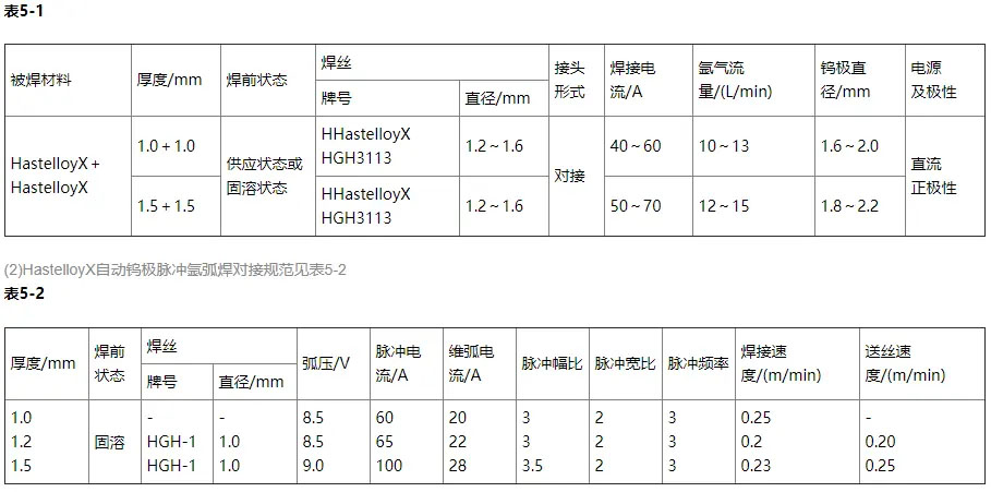 (1)HastelloyX手工氬弧焊對(duì)接規(guī)范見(jiàn)表5-1