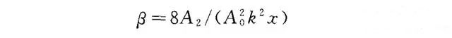 式中:x為傳播距離;A。,A₂分別為基波幅值,二次諧波幅值;k為波數(shù),近似認為x和k為定值,采用相對非線性系數(shù)β'代替β,即β'=A₂/A2。