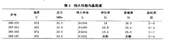 在我們的實(shí)驗(yàn)中(見表3)也完全證實(shí)Incoloy 800H合金晶粒度在2~5級(jí)晶粒度下蠕變壽命(應(yīng)力33MPa)≥1000h。