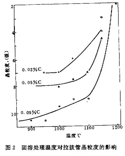 同一般不銹鋼一樣Incoloy 800合金的晶粒度隨著固溶溫度的升高,晶粒尺寸明顯的增大,但不是簡(jiǎn)單的直接關(guān)系(如圖2)。我們進(jìn)行固溶溫度與晶粒度之間關(guān)系的實(shí)驗(yàn)證實(shí):Incoloy 800H晶粒度的粗化溫度在1130℃~1140℃之間,保溫在3h以上晶粒明顯粗化。